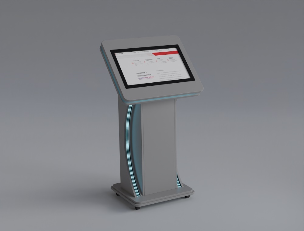 Установка интерактивного киоска повышает продуктивность работы организации за счет: Интерактивный киоск имеет стильный дизайн, который привлекает внимание посетителей, создает репутацию успешной компании, использующей инновационные устройства и технологии. Яркий экран с антибликовым покрытием и возможностью быстрого поиска необходимой информации произведут более благоприятное впечатление, чем не всегда компетентные и доброжелательные ответы уставших или недавно принятых на работу сотрудников. Оборудование подходит для установки в государственных организациях, банках, образовательных учреждениях, вокзалах, ресторанах, музеях, библиотеках. Общие габариты без колес (ВхШхГ) 118-119 х 66-73 х 46 см Диагональ экрана 23,6"; 27" дюймов (на выбор) Соотношение сторон 16:9 Разрешение экрана 1920 х 1080 px, FullHD Тип матрицы IPS Тип сенсора Проекционно-емкостной - 10 касаний Защитное стекло Антибликовое, толщина 3 мм Процессор Intel Core i3 Оперативная память 8 Gb Жесткий диск SSD 120 Gb Беспроводное подключение Wi-Fi адаптер Лицензионная операционная система Microsoft Windows 10 Professional Встроенные стереодинамики Есть Панель подключения Электронный старт-ключ, разъем питания, порт LAN-кабеля, USB, HDMI RGB-подсветка Наличие Безбатареечный стилус Наличие Сертификат соответствия на комплекс НаличиеПреимущества интерактивного киоска
