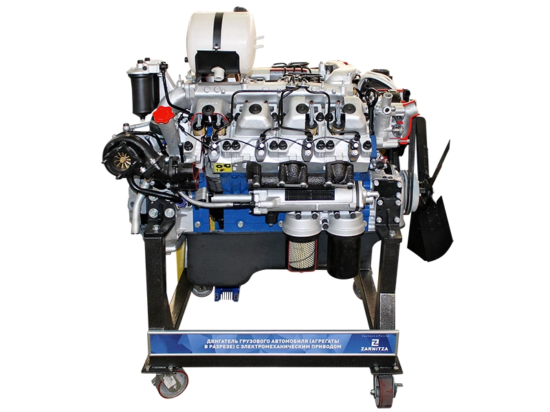 - Стенд с разрезными агрегатами "Двигатель дизельный грузового автомобиля с навесным оборудованием" (с электромеханическим приводом).