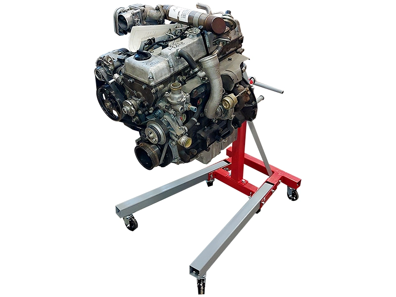 Учебный комплект представляет собой дизельный двигатель легкового автомобиля, установленный на мобильном кантователе.