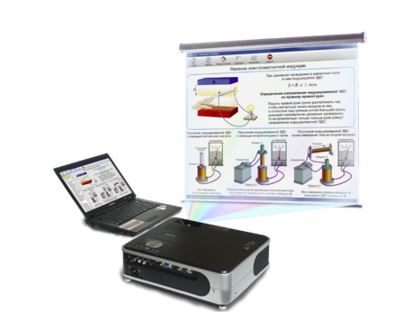 Комплекс оборудования для демонстрации дидактического материала в кабинете до 35 человек. Состав: проектор, экран (150х150 см), ноутбук, дидактическое ПО по курсам: