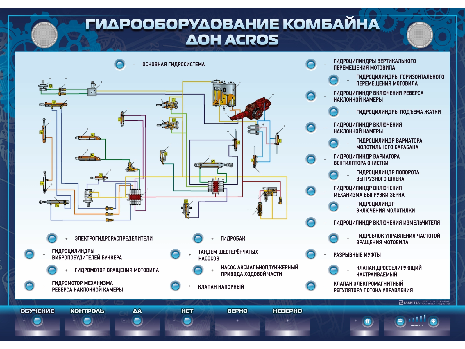 Интерактивный стенд предназначен для получения знаний о гидрооборудовании зерноуборочного комбайна.