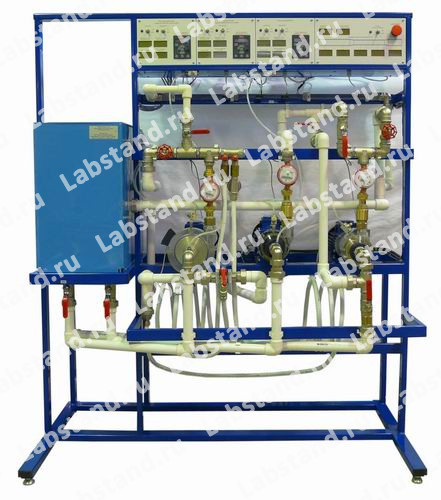Стенд позволяет изучать работу насосов динамического типа: центробежного с открытым рабочим колесом, центробежного с закрытым рабочим колесом, вихревого, измерять напорно-расходные характеристики насосов и насосной станции на базе комбинации соединений насосов, задавать и определять давление и расход жидкости в различных точках гидросистемы.