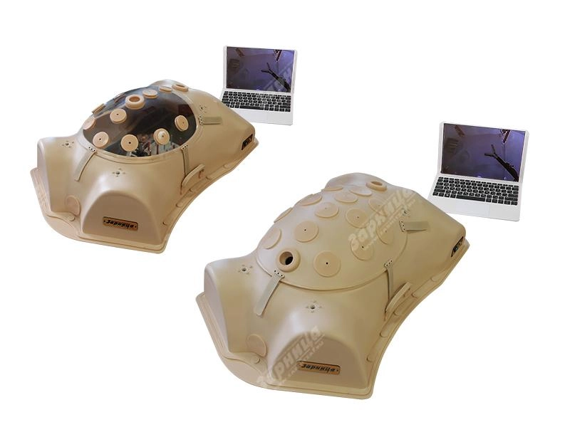 Конструкция представляет собой модель туловища человека с верхними фрагментами бедер, и обеспечивает быстрый и легкий доступ при замене компонентов, применяемых на занятиях по проведению лапароскопических операций. На корпусе, повторяющем конфигурацию передней брюшной стенки в состоянии инсуфляции, равномерно распределены порты для эндохирургических инструментов. Поддон модели туловища оснащен металлической пластиной, позволяющей проводить электрокоагуляционные манипуляции на биологическом материале. Корпус тренажера обеспечивает возможность проведения тренировки в двух режимах: