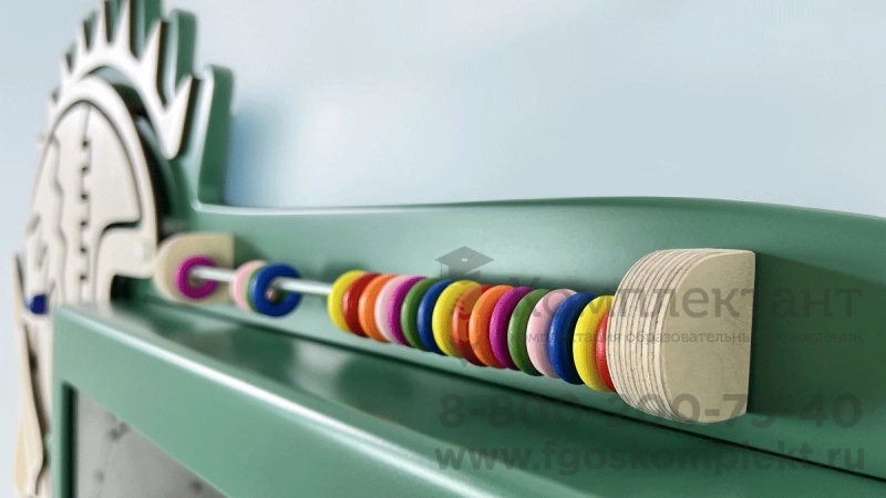 На центральной части бизиборда находится интерактивная сенсорная панель, с комплектом лучших образовательных программ АЛМА. Более 200 интерактивных игр по дошкольной образовательной программе.