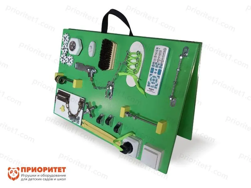 - Благодаря складной конструкции, бизиборд мобилен и может использоваться даже на природе.