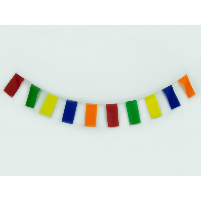 Флажная лента — это ряд прямоугольных разноцветных флажков (5 цветов – синий, красный, желтый, зеленый, оранжевый), пришитых к шнуру.
