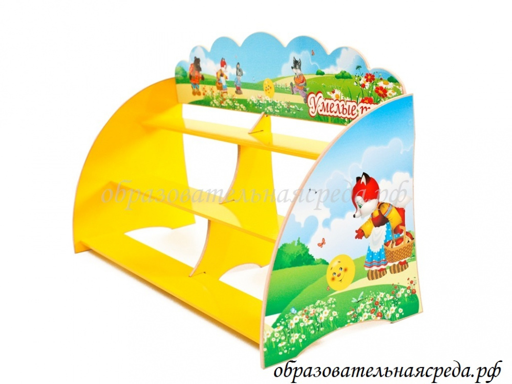Полочка предназначена для демонстрации творческих работ детей и выполнена с нанесением полноцветного, яркого рисунка по мотивам сказки "Колобок". Любимый герой сказки будет вместе с детишками разглядывать их работы и побуждать к новому творчеству.