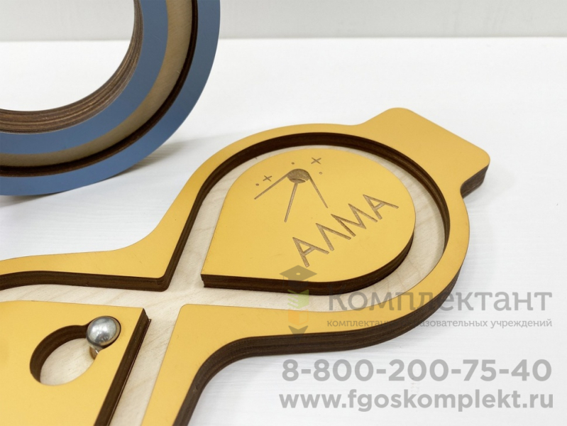 Изделия выполнены из высококачественной берёзовой фанеры и покрыты полиуретановыми красками, устойчивыми к истиранию и выцветанию. Металлический шарик крепится на магните.