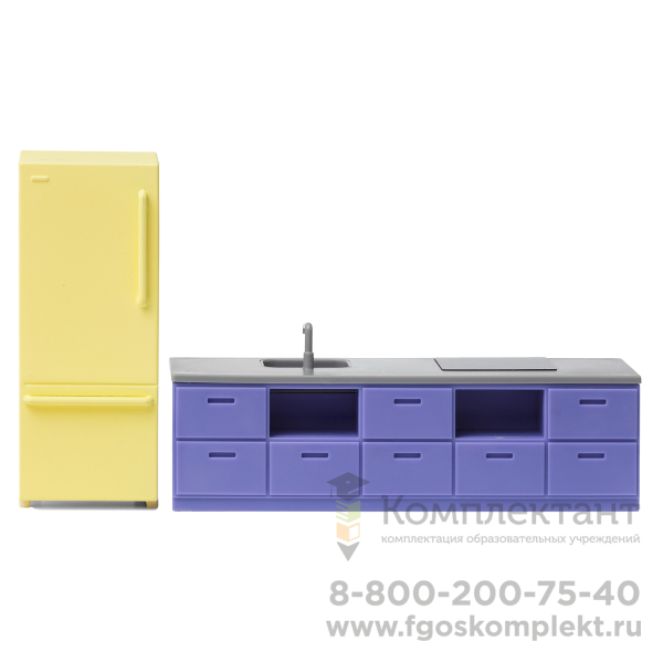 Набор мебели для кухни Несколько отсеков для хранения кухонных принадлежностей Плитка с духовкой Раковина Цвет фиолетовый Желтый холодильник