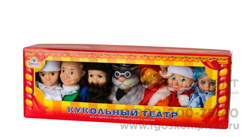 Набор кукол для кукольного театра по сказкам №1. Размер упаковки 52,7*10,2*18,6 см.