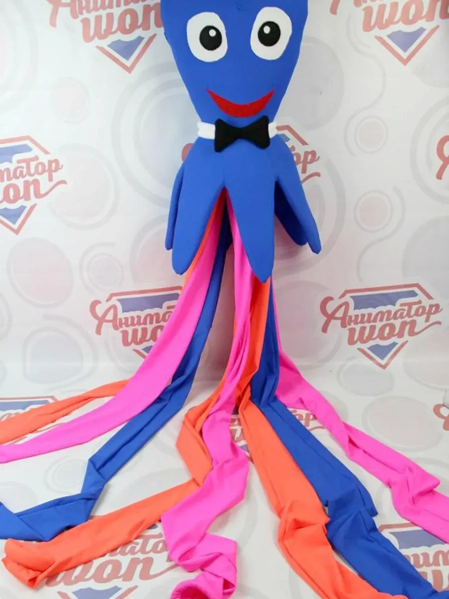 С таким реквизитом детям на празднике точно не будет скучно. На Осьминоге есть ручка для придерживания аниматором реквизита, а детки могут просовывать шарики по разноцветным щупальцам яркого и красочного обитателя морей. Для реквизита подходят шарики из игрового бассейна.