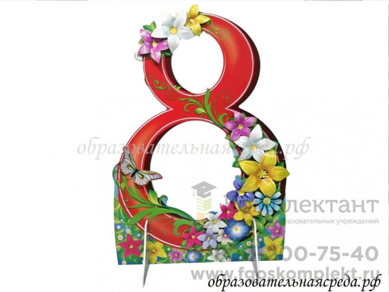 Театральная декорация "8 марта" выполнена из МДФ, с нанесением полноцветного рисунка и каскадом объемных цветов. Высота декорации 1,45м, ширина - 1м. Декорация "8 марта" подойдет в качестве основного элемента декора к празднику весны.