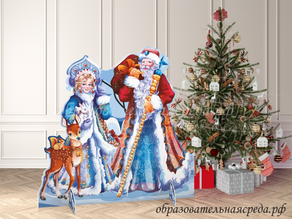 Театральная декорация "Дед Мороз со Снегурочкой и Олененком