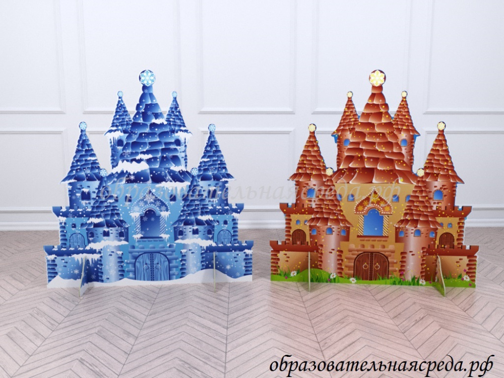 Театральная декорация "Ледяной дворец" выполнена из МДФ, с нанесением полноцветного рисунка с двух сторон. Высота декорации 1,1м, ширина - 1,1м. Декорация "Ледяной дворец" подойдет в качестве дополнения к любому празднику.