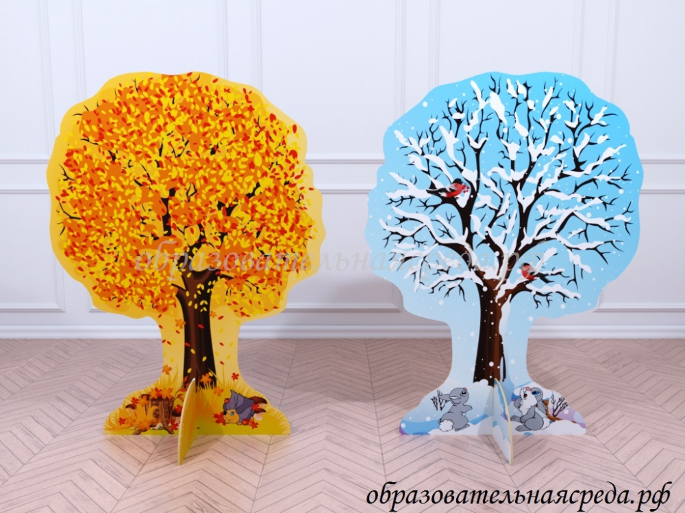 Театральная декорация "Липа" (осень-зима) выполнена из МДФ, с нанесением полноцветного рисунка с двух сторон. Высота декорации 1,2м, ширина - 0,9м.