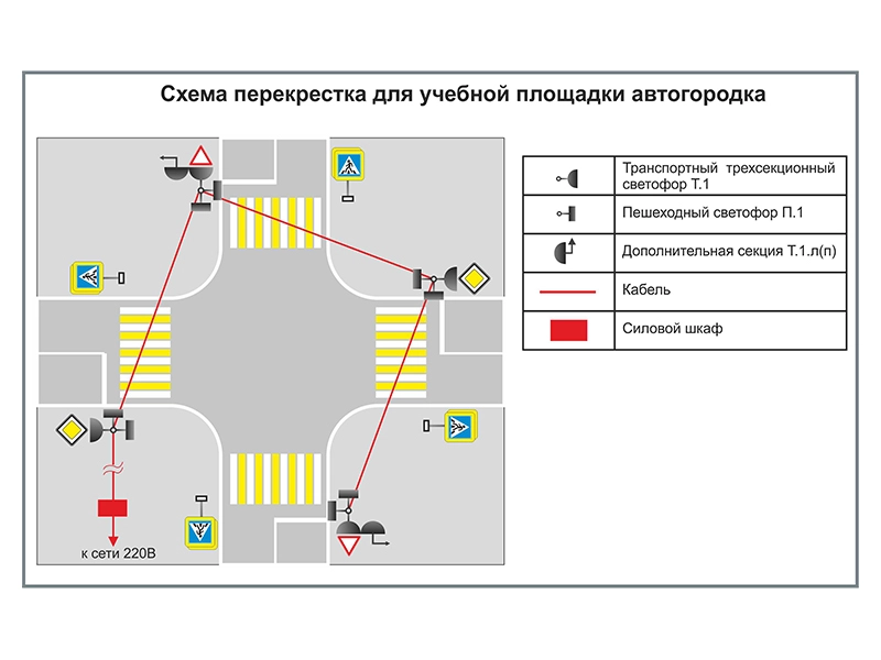 Учебные площадки со стационарным оборудованием предназначены для обучения учащихся дошкольных и школьных общеобразовательных учреждений навыкам безопасного поведения на дорогах, с использованием методических рекомендаций по изучению правил дорожного движения. Учебная площадка располагается на асфальтированной поверхности площадью от 100 м2 и оборудуется электрифицированными светофорами. Возможна установка нескольких учебных площадок (перекрестков) на одной территории с их объединением в общую дорожную инфраструктуру. Оборудование учебной площадки (светофоры, дорожные знаки) устанавливается на бетонированные фундаменты, а электропитание светофоров осуществляется от стационарного источника.