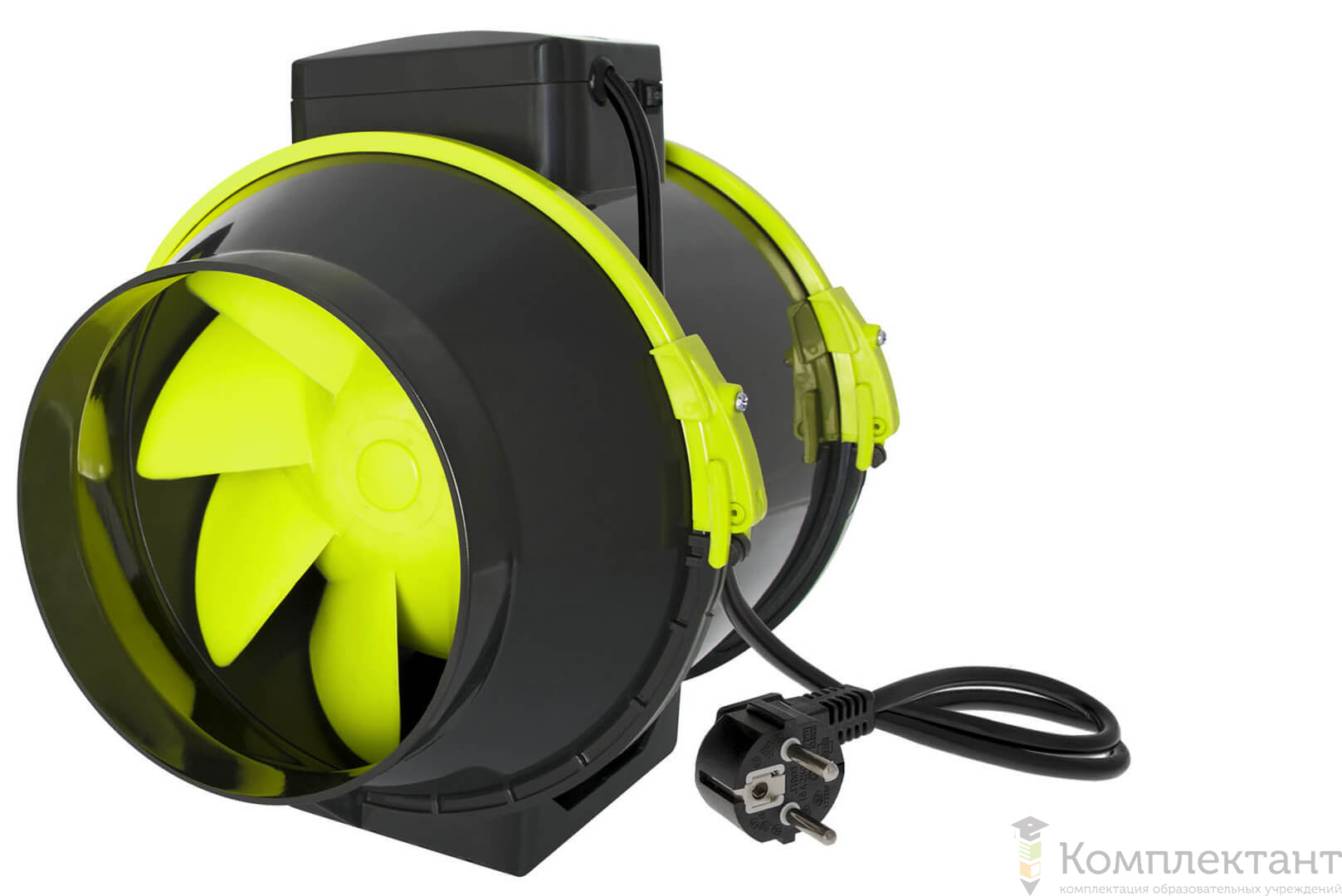 Вытягивает очищенный через фильтр воздух наружу. Как и фильтр, подключается к воздуховоду хомутами и алюминиевым скотчем.