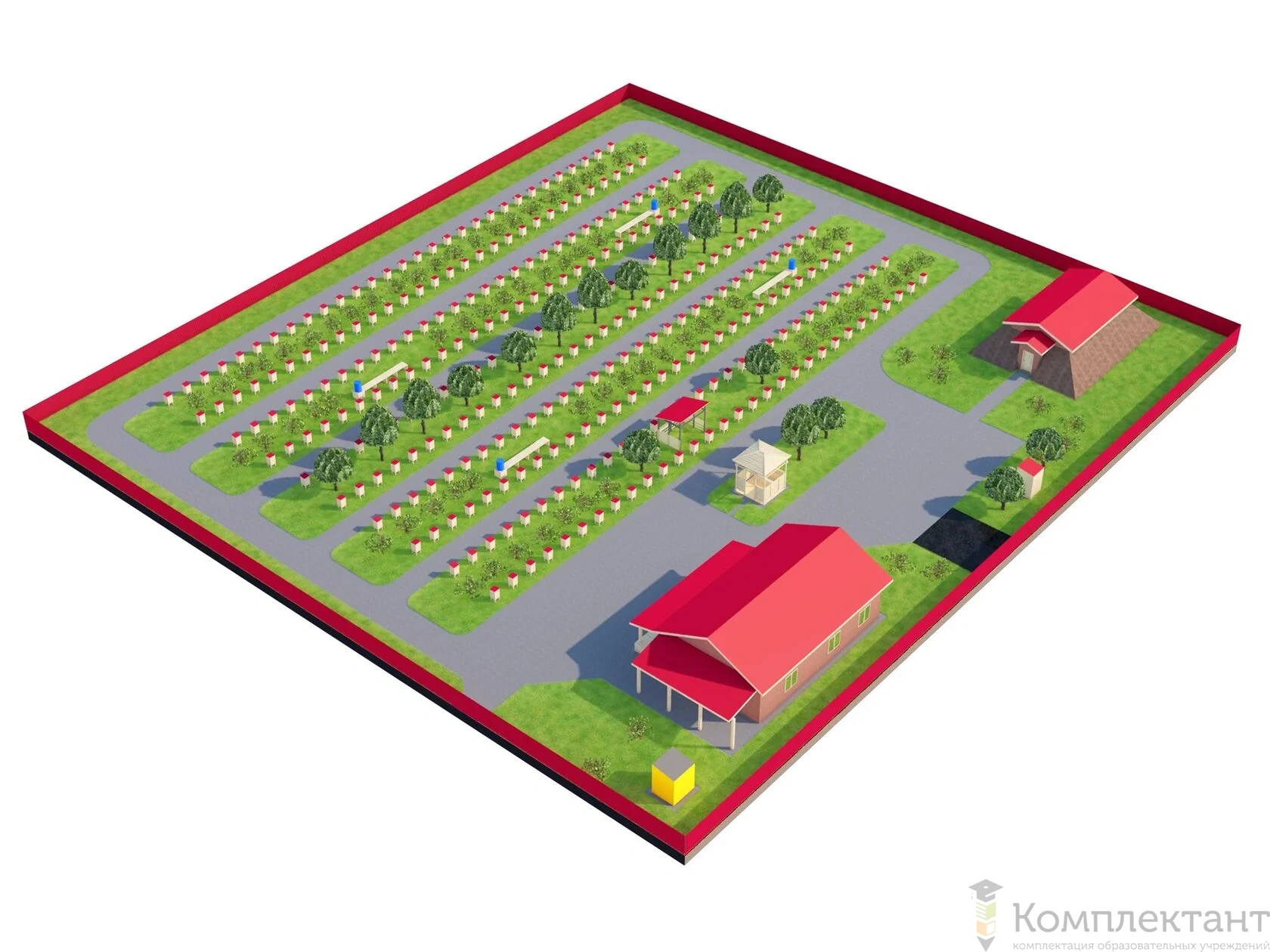 Макет пасеки наглядно демонстрирует общую структуру и организацию пчеловодческого хозяйства, включая расположение всех ключевых элементов и объектов. Исполнение макета — настольное.
