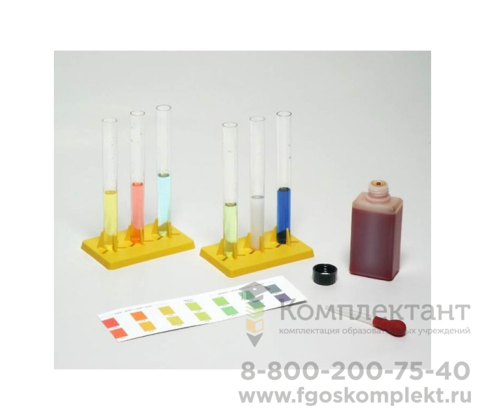 В наборе (для 1 рабочей группы или для демонстрации)*: направляющий рельс, кювета, термометр, трубки, пробирки, колба Эрленмейера, воронка, спиртовка, индикаторный раствор и индикаторные полоски, краситель пищевой, пипетка, препаровальная игла, надувные шары, спички, свеча, фильтры, магнит цилиндрический, биметаллическая пластина, масло растительное, поваренная соль, сахарный песок, лимонная кислота, образцы материалов для исследования физических свойств (дерево, пенопласт, картон, шпагат, ткань х,б, скрепки металлические, зубочистки деревянные, бумага, пластик,алюминий, железо, медь, цинк, никель, латунь, жесть, стекло, резина,фарфор,поролон, камушек и др.),аксессуары.
