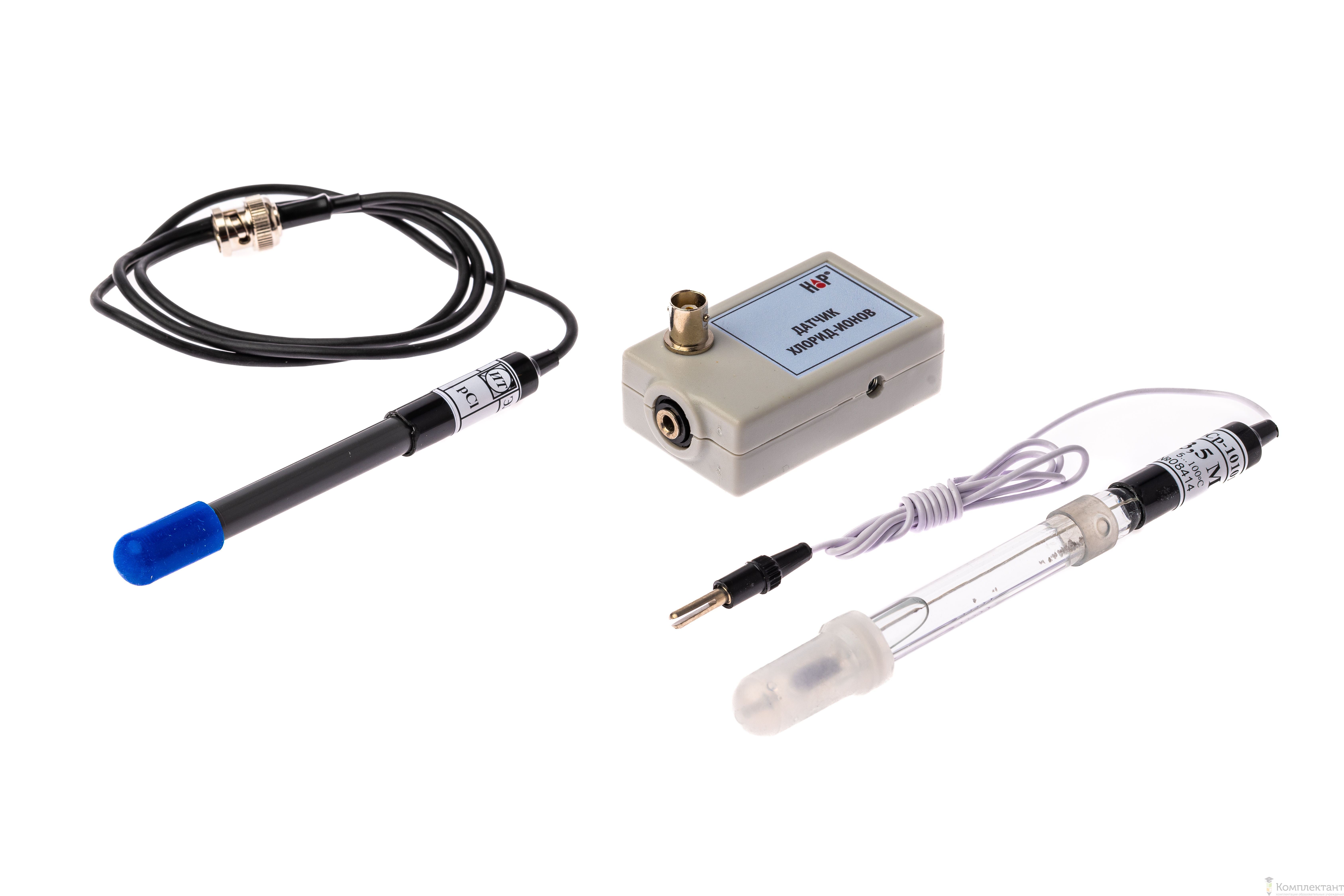 Цифровой датчик хлорид-ионов состоит из электронного блока, электрода ионоселективного на Cl и электрода сравнения. Электроды имеют кабели для подключения к соответствующим разъемам электронного блока.