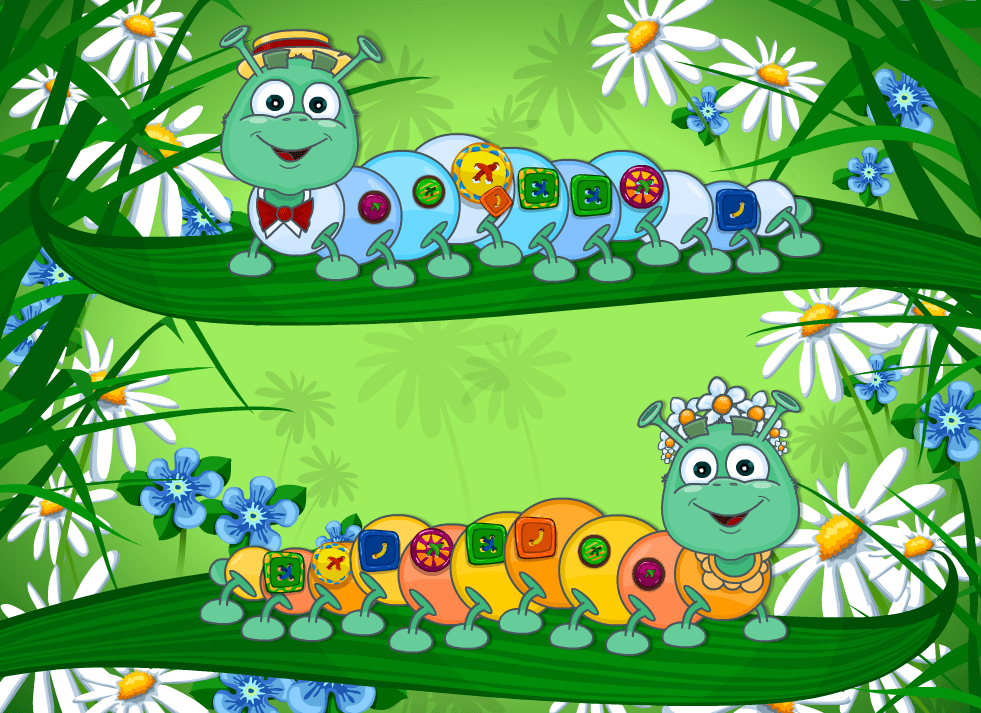 Разноцветные гусеницы - большие модницы. Запомнить наряд и повторить его удастся только самым внимательным детям.