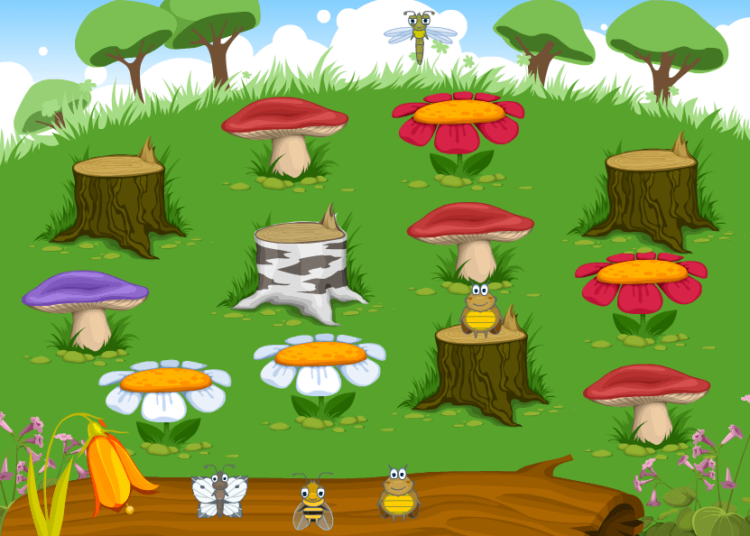 Услышав инструкцию Лесничего, ребенок должен запомнить ее и посадить насекомых в указанные места. Сложность инструкции можно менять в настройках.