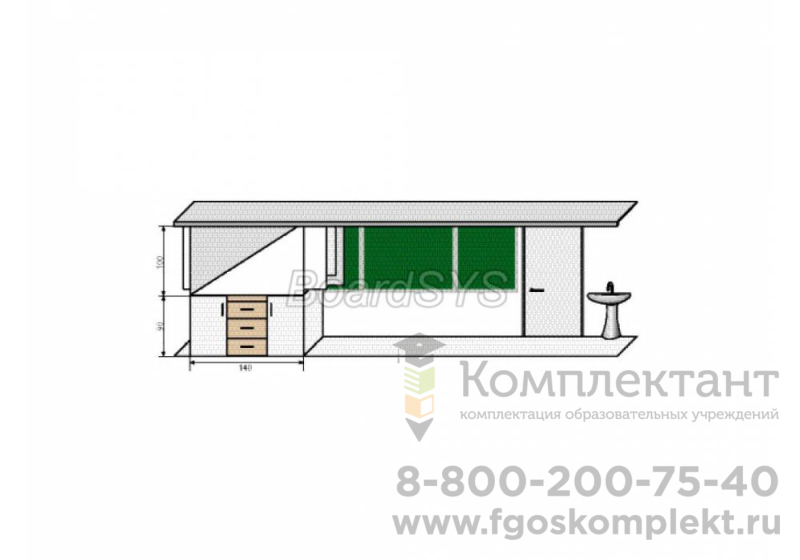 Комплектация изделия: Картотека 6-30 (система для хранения и демонстрации плакатного материала до 60 мм); Доска 100х140 текстильная (для проецирования изображений) илимагнитно-маркерная доска; Фальшпанель с выкатным ящиком (для дидактических материалов); Комплект аксессуаров; Профиль ПВХ для крепления плакатов 84 м.п.; Крючок-ролик 120 шт. «КАРТОТЕКА 1» используется для хранения и демонстрации плакатных материалов высотой не более 1,5 метров.