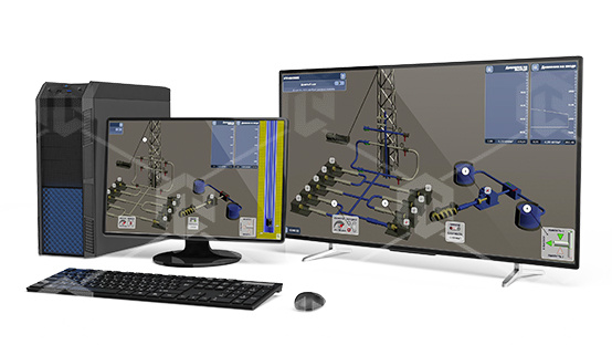 Специализированный программно-аппаратный комплекс, позволяющий при помощи интерактивного взаимодействия с полноразмерным пультом управления и цифровой имитационной моделью исследовать технологический процесс гидропескоструйной перфорации, а также отрабатывать навыки управления оборудованием для перфорации. Реализована имитация процесса гидропескоструйной перфорации, с возможностью изменения параметров оборудования, отработки технологических ошибок и ликвидации нештатных ситуаций при ГПП. Реализована проверка и оценка имитационного сценария.