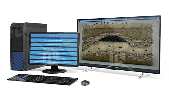 Специализированное программное обеспечение программного модуля геология нефти и газа, позволяющее наглядно отображать процесс миграции углеводородов в земной коре. Позволяет изучать основные принципы перемещения подвижных флюидов углеводородов. В программе реализована проверка знаний в виде контрольного тестирования.