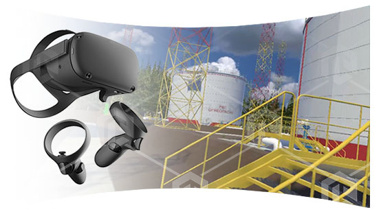 Реализовано интерактивное взаимодействие с элементами трехмерных моделей с помощью шлема и контроллеров виртуальной реальности Oculus Quest, с возможностью перемещения в открытых виртуальных пространствах, масштабированием трехмерных моделей нефтегазового оборудования.