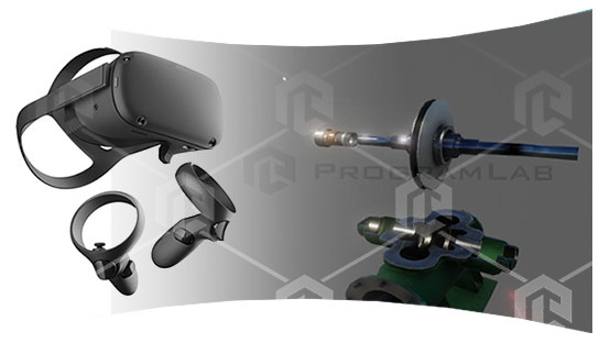 Реализовано интерактивное взаимодействие с элементами трехмерных моделей с помощью шлема и контроллеров виртуальной реальности Oculus Quest, с возможностью перемещения в открытых виртуальных пространствах, масштабированием трехмерных моделей нефтегазового оборудования.
